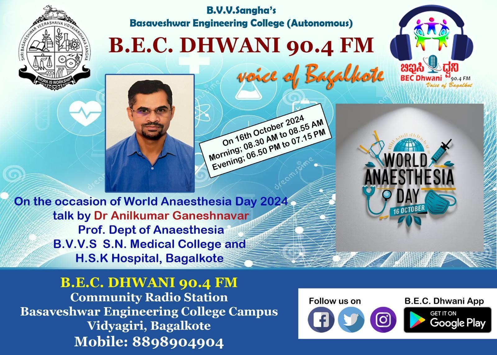 BEC-DHWANI 90.4 FM - VOICE OF BAGALKOT on Occasion of WORLD ANAESTHESIA DAY