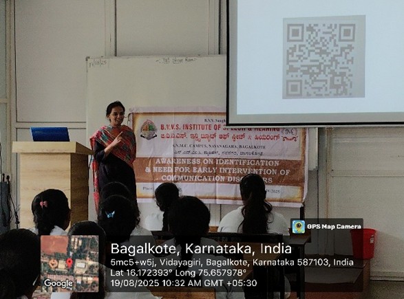 On 19 August 2025, an Awareness Program on Communication Disorders was conducted at Sharadambe Institute of Nursing Science, Vidyagiri, Bagalkote.