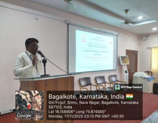 On 17 November 2025, a Report on Awareness Program on Communication Disorders was conducted at Sajjala shri Nursing collage Bagalkote